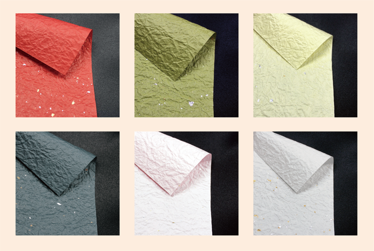 もみ加工され細かな金銀が散りばめられた色和紙。 シンプルで様々な用途に使いやすい紙です。