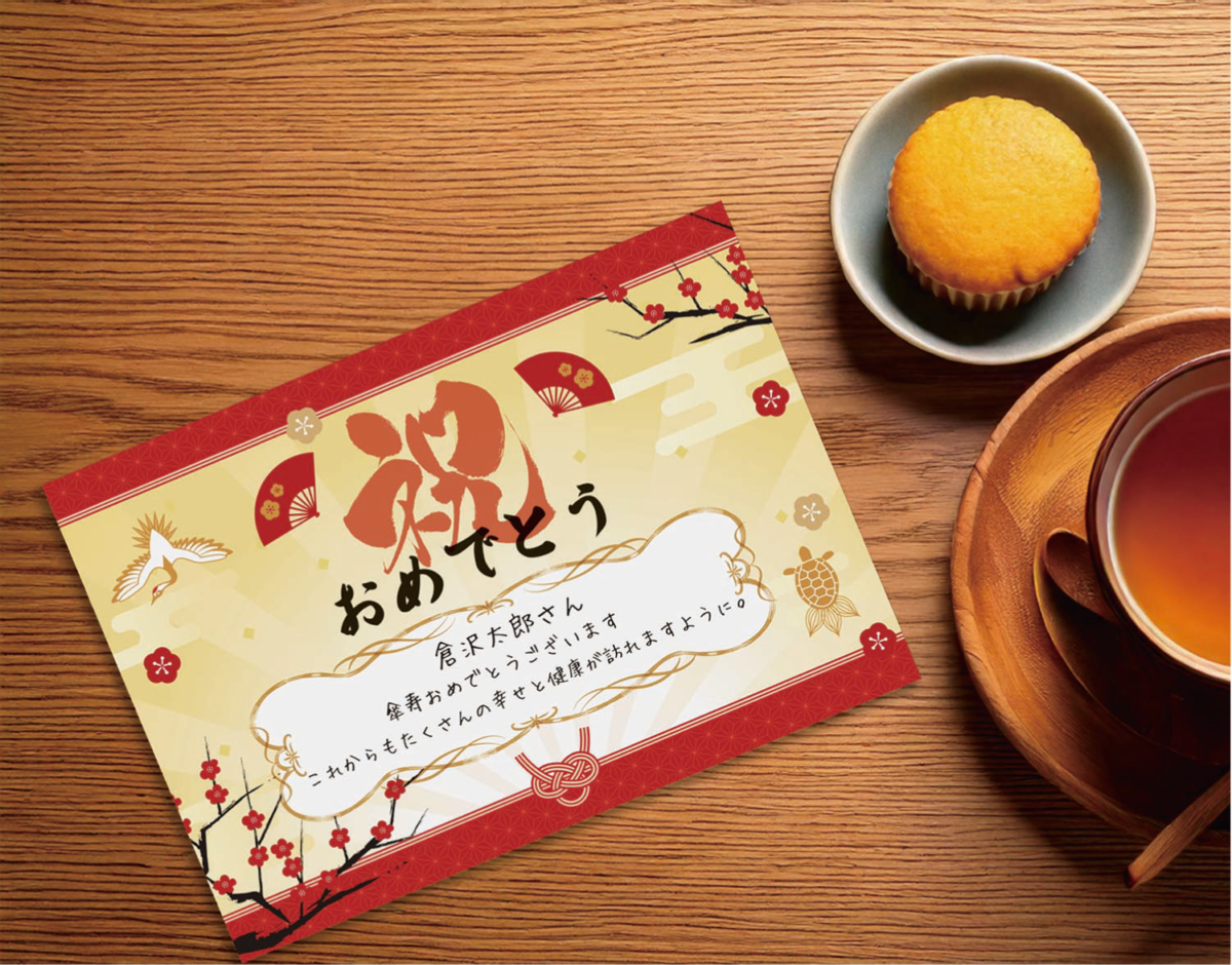 ●手書きで一言メッセージを添えれば、長寿のお祝いの記憶に残るメッセージカードが作れます。