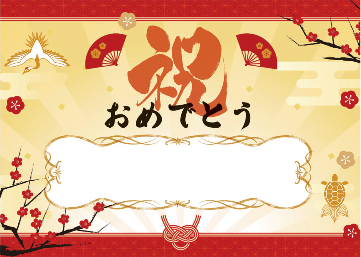 ●鶴・亀・梅・扇といった、縁起の良いイラスト入り
