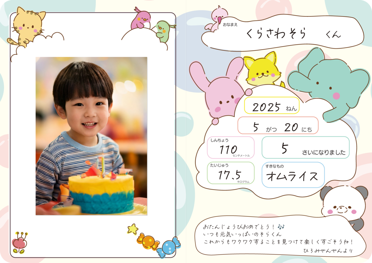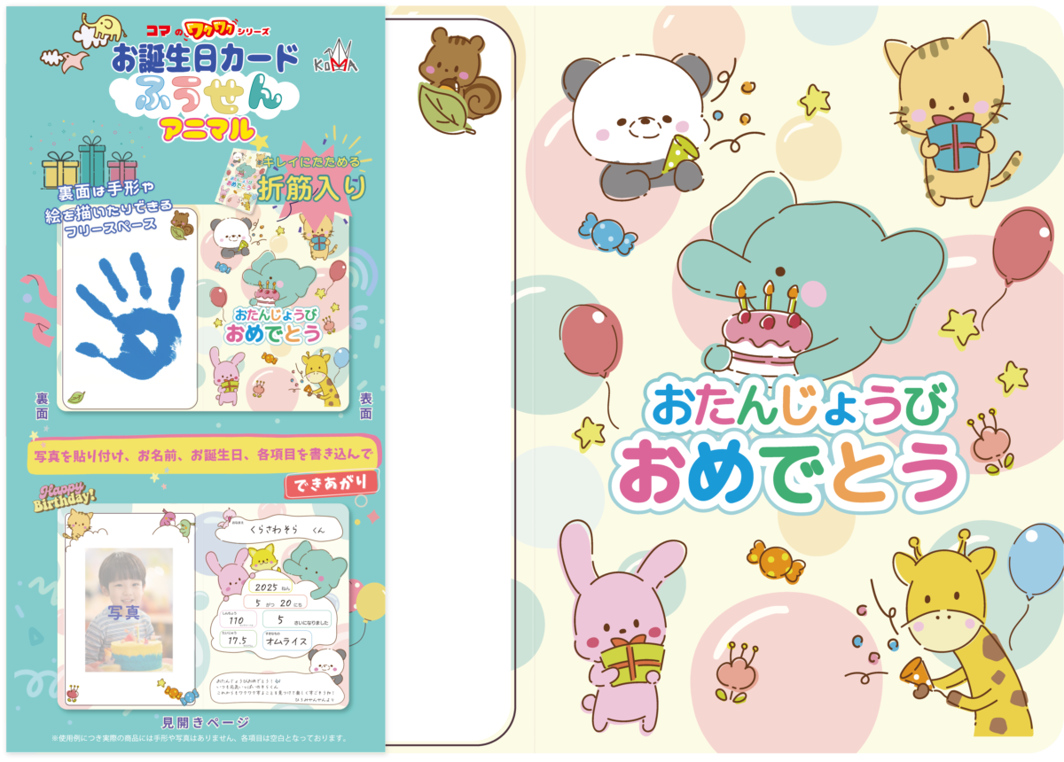 ●写真を貼って手書きで文字入れするだけで、思い出に残るとてもかわいいお誕生日カードが作れます。