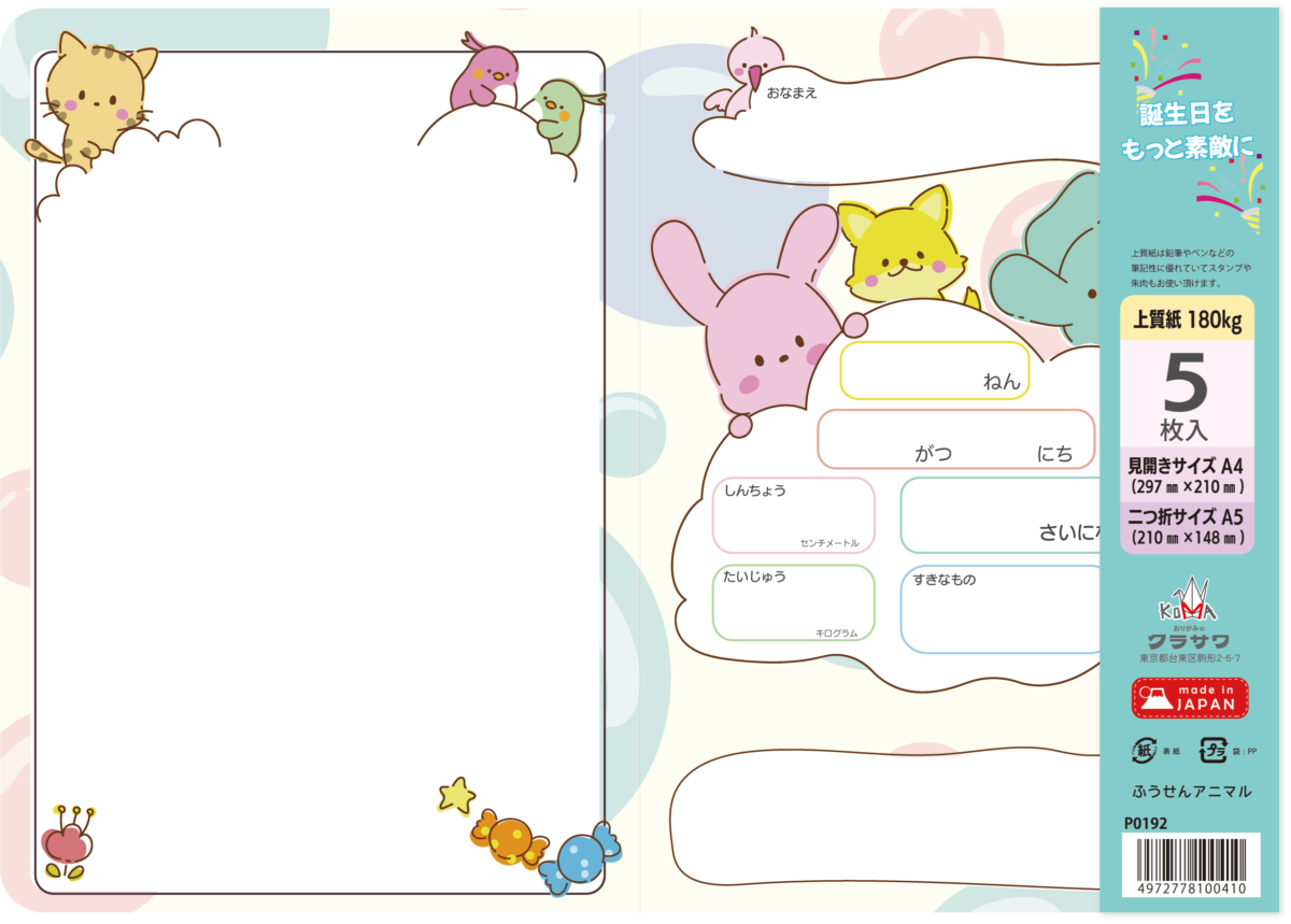 時間がないけど、かわいいお誕生日カードを作りたい、という幼稚園・保育園のお忙しい先生方にピッタリの商品です。
